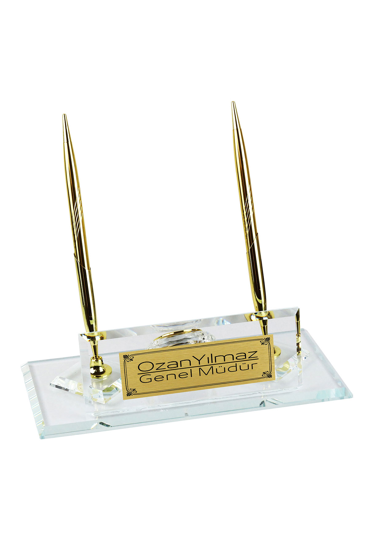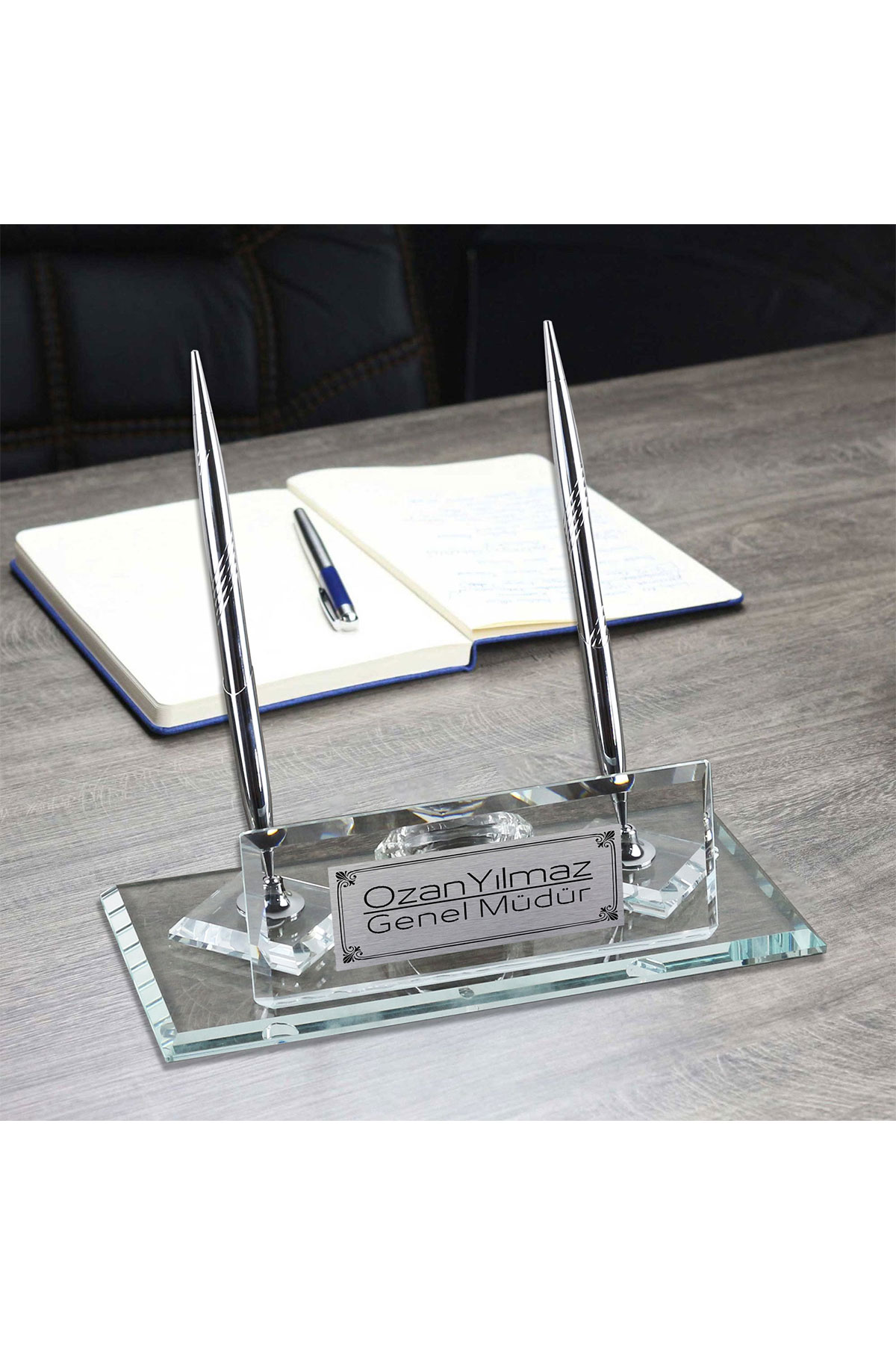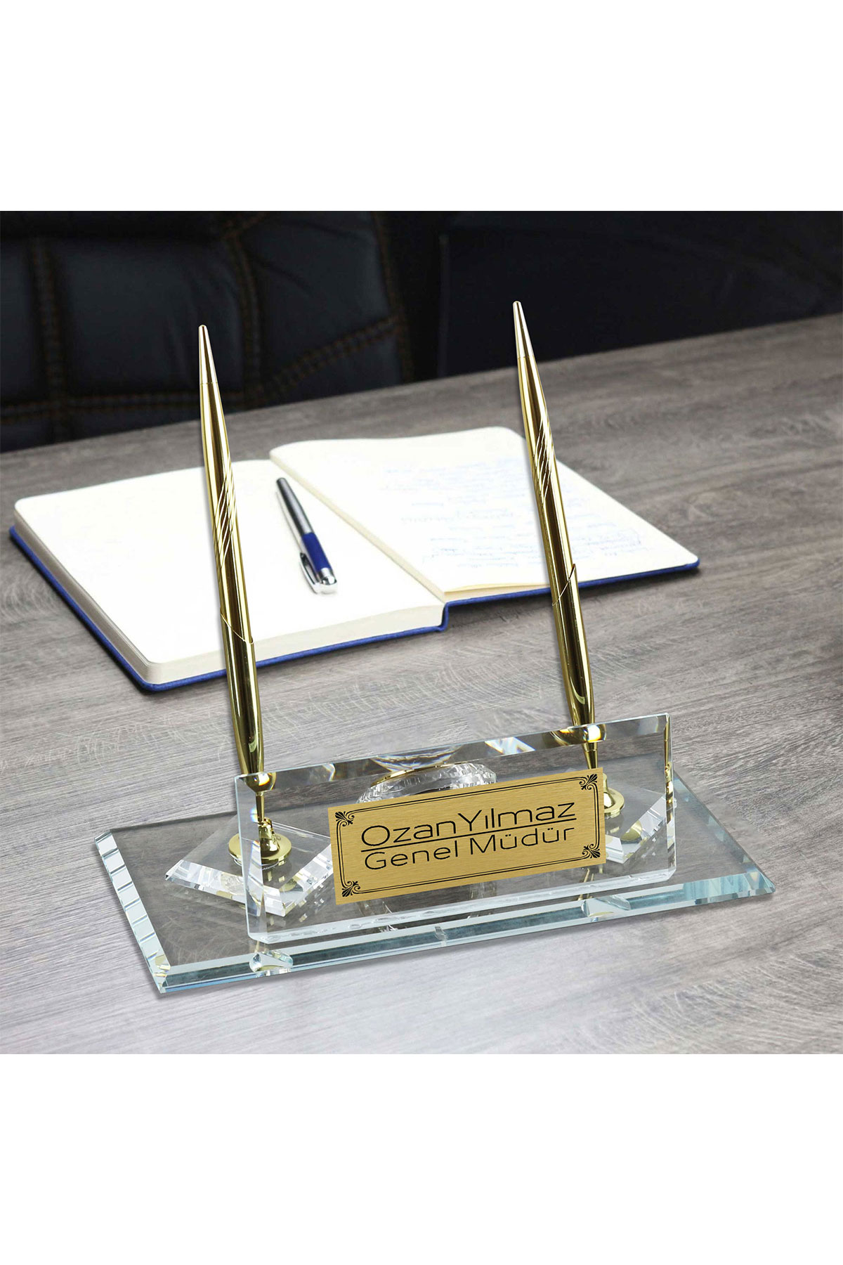 Kristal Cam Masa İsimliği Kalemli Ofis Hediyesi Masa İsimliği KMI301