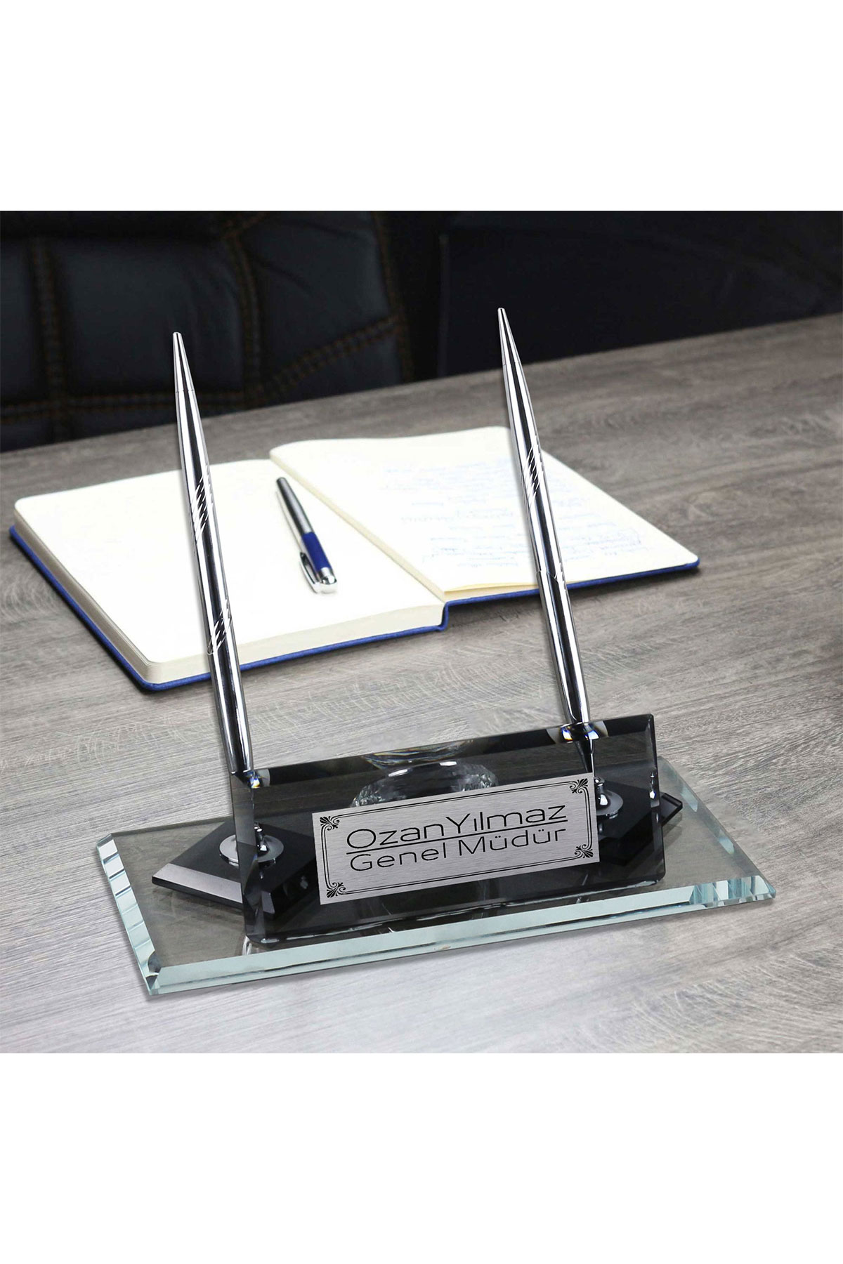 Kristal Cam Masa İsimliği Kalemli Ofis Hediyesi Masa İsimliği KMI303