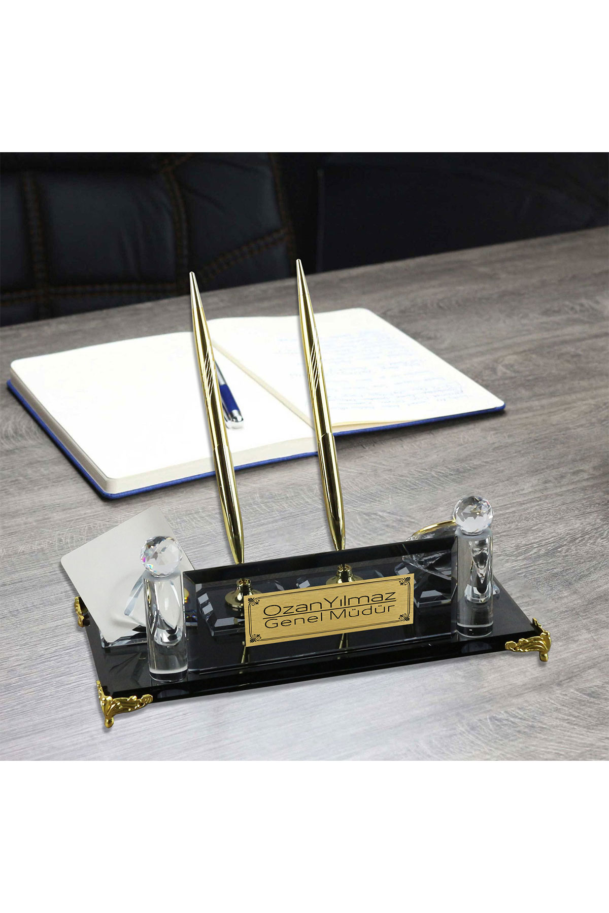 Kristal Cam Masa İsimliği Kalemli Ofis Hediyesi Masa İsimliği KMI5118