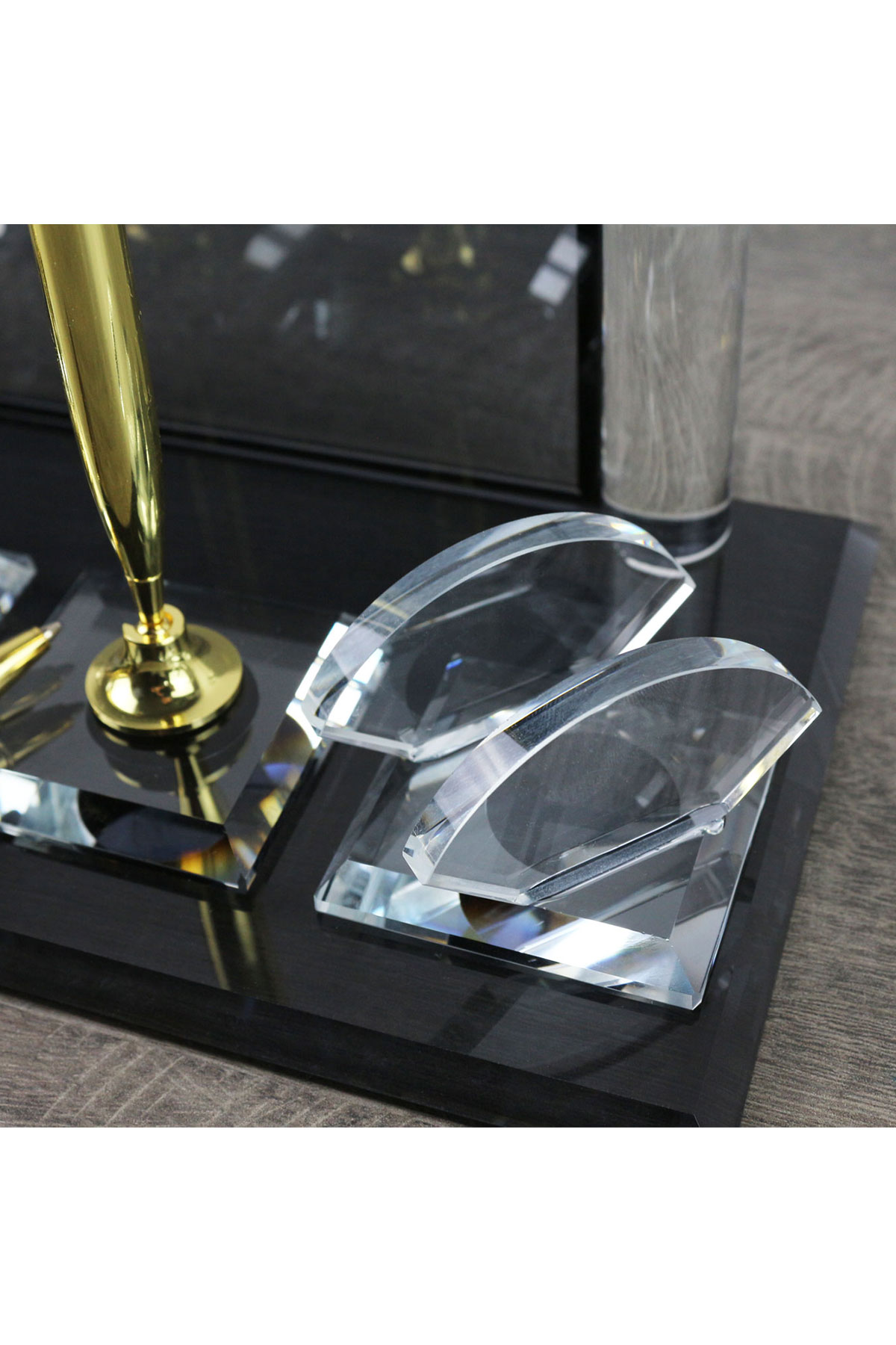 Ofisinizdeki profesyonel imajınızı güçlendirmek için ideal bir tercih olan cam masaüstü isimlik ve aksesuar setimizle, iş yerinizde fark yaratın.